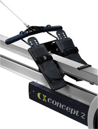 The footrest is free to move back and forth on the monorail. A drive cord connects the foot carriage to the handle and transmits the combined leg and upper body force to the flywheel. The Dynamic encourages body control, early body preparation and good “connection” between the oar handle and footrest during the drive.