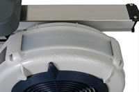 On the Dynamic RowErg, the flywheel is located near the athlete, providing some airflow from below while you row. All Concept2 Dynamic RowErgs now ship with an optional Wind Shield. The clear plastic Wind Shield is located on the top of the flywheel and designed to deflect air coming from the flywheel away from the rower’s body. Athletes who prefer the additional breeze can easily slip the Wind Shield off.